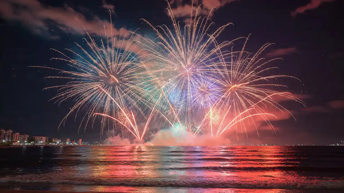 Piúma lança festival de 31/12 a 4/1 na Praça Dona Carmem. Fogos inéditos saem de balsas na orla central, garantindo espetáculo visual seguro.
