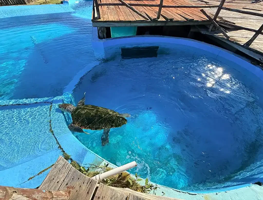 Mas o que mais doeu foi ver as “estrelas” do projeto. Os tanques onde ficam as tartarugas — incluindo a área vital para a proteção da histórica Tartaruga-Gigante (Dermochelys coriacea) — passavam uma sensação de tristeza e pouco cuidado. Não é o padrão de excelência que o capixaba se acostumou a ver no Tamar.