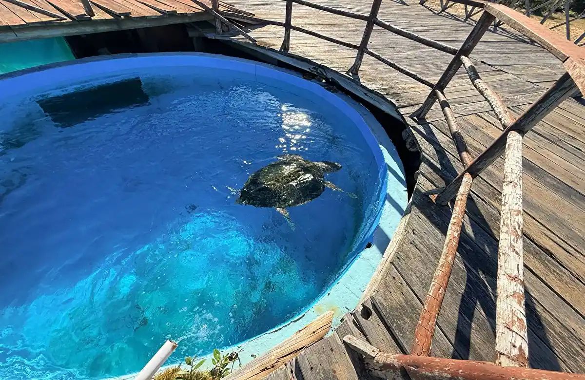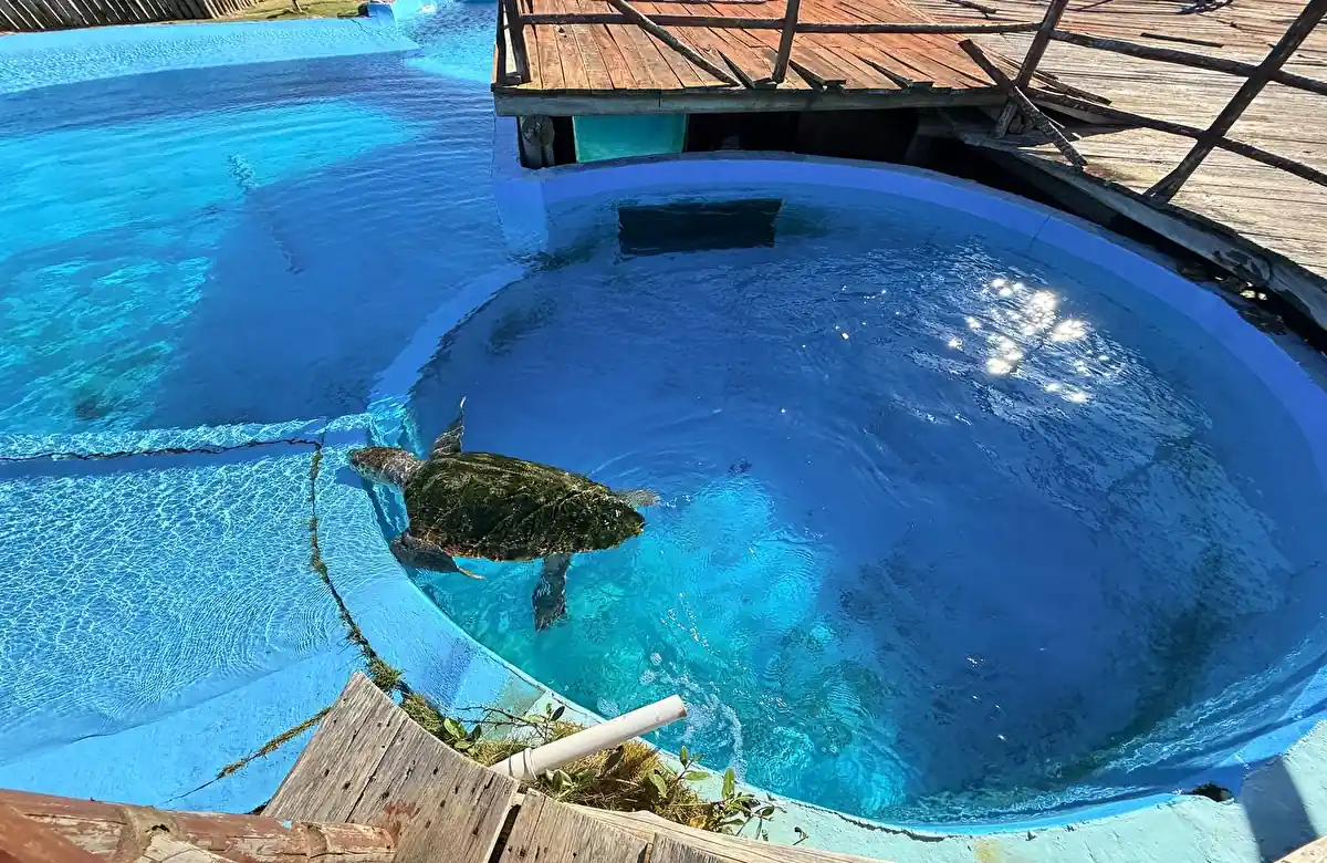 Mas o que mais doeu foi ver as “estrelas” do projeto. Os tanques onde ficam as tartarugas — incluindo a área vital para a proteção da histórica Tartaruga-Gigante (Dermochelys coriacea) — passavam uma sensação de tristeza e pouco cuidado. Não é o padrão de excelência que o capixaba se acostumou a ver no Tamar.