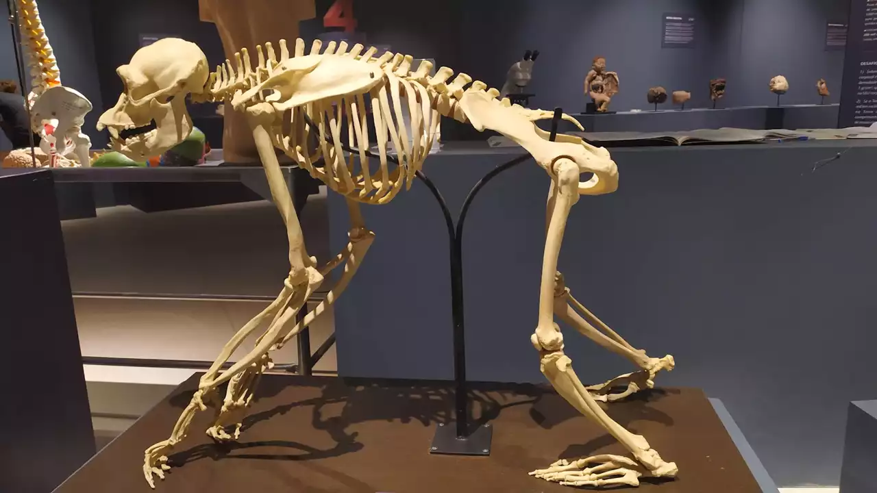 Réplicas realísticas de fósseis de hominídeos e animais pré-históricos