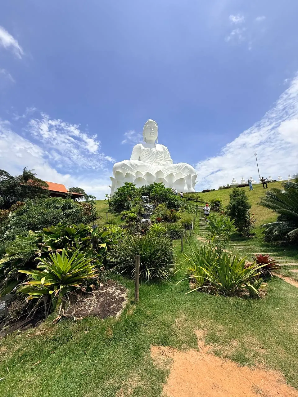 A imagem impressiona não apenas pelo tamanho — com mais de 35 metros de altura —, mas também pela energia de paz e contemplação que domina o ambiente. Rodeado por natureza e pelo silêncio do mosteiro, o Buda parece observar calmamente o movimento constante da BR-101 logo abaixo.