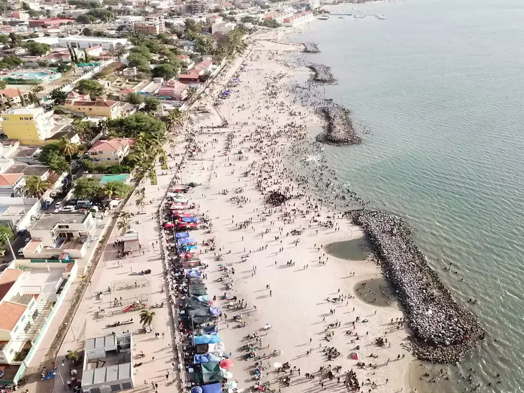 Faixa de areia reduzida no acesso principal, mas ampla para quem deseja relaxar e aproveitar.