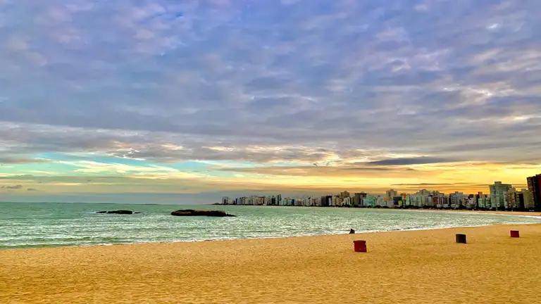 Curva da Jurema (Vitória): com mar calmo e clima de “piscina natural”, é ideal para famílias e para curtir o pôr do sol de verão, quando a luz dourada se prolonga e cria cenário perfeito para fotos e fim de tarde nos quiosques.