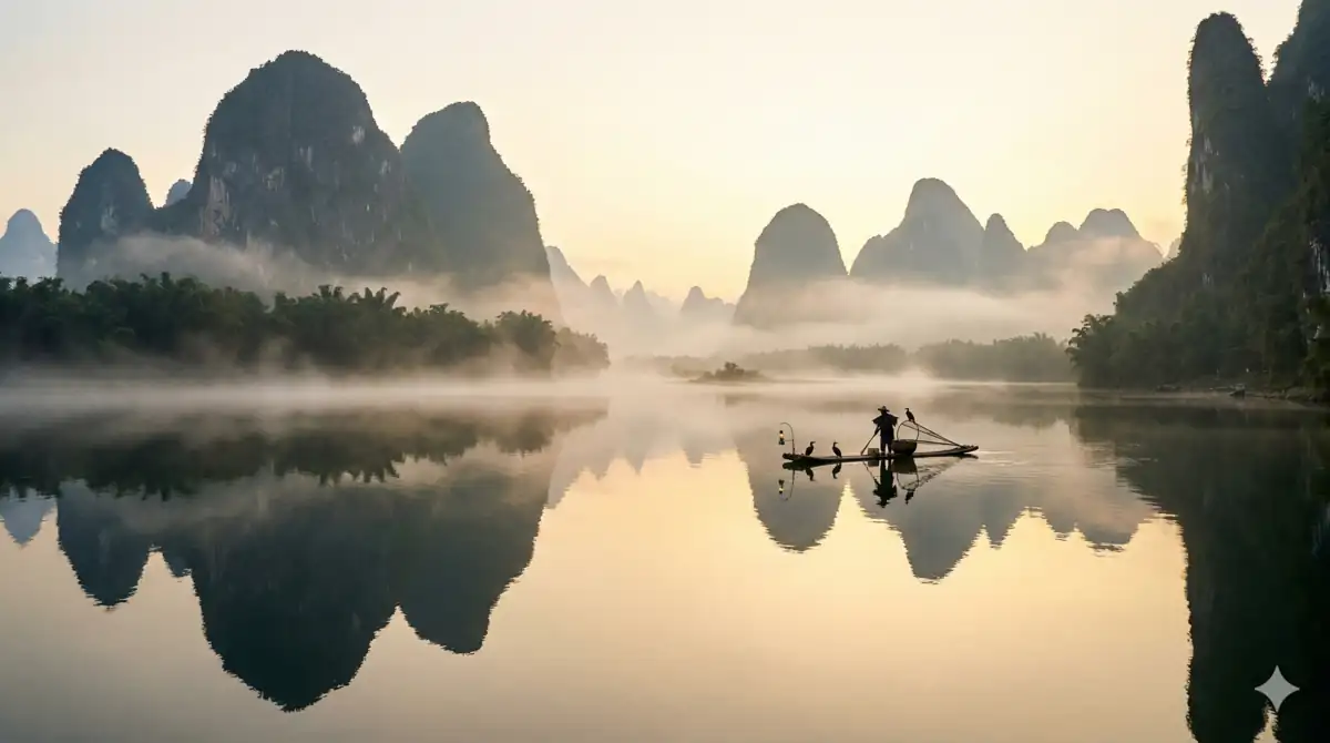 Famosa por suas montanhas cársticas de calcário e rios serenos, a paisagem de Guilin é tão icônica que está estampada na nota de 20 Yuan. Yangshuo, uma vila próxima, oferece uma experiência mais rural e aventureira.